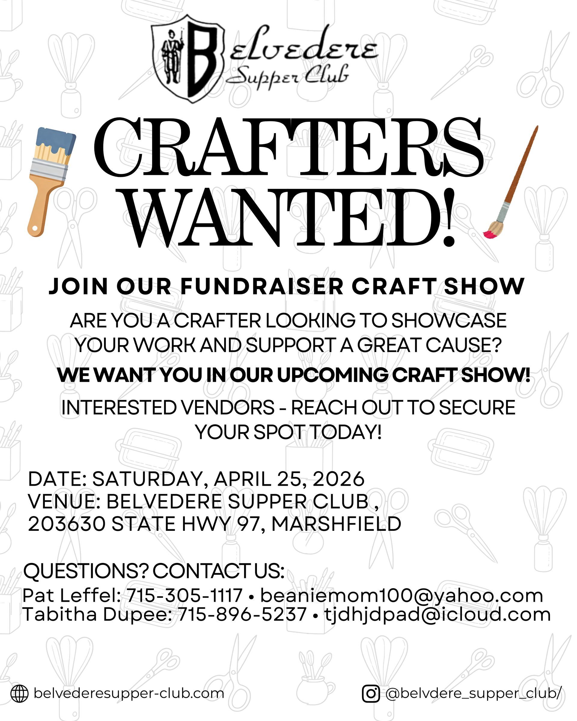 Join us on Saturday, April 25, 2026, at the Belvedere Supper Club in Marshfield to showcase your work and support a great cause. Interested vendors can secure a spot by contacting Pat Leffel at 715-305-1117 or Tabitha Dupee at 715-896-5237. For more details on the cancer benefit this event supports, please click the button below.